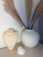 The chain is crafted from gold-plated stainless steel, which helps the jewelry maintain its color and makes it resistant to everyday wear. Tiny glass beads complete the design, beautifully reflecting the light and adding an elegant touch.