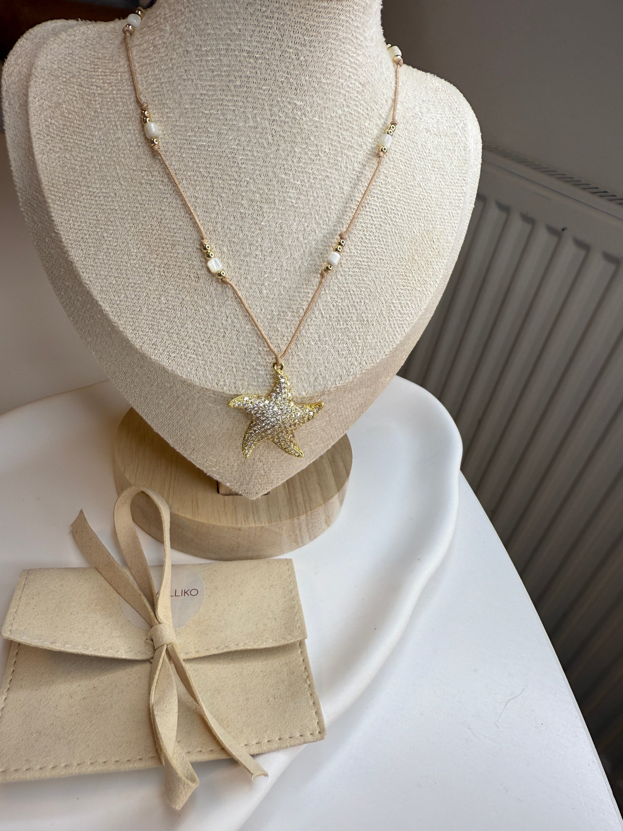 Złota gwiazda morska wysadzana cyrkoniami to idealny dodatek na wakacyjne dni – subtelna, ale przyciąga spojrzenia! 🐚